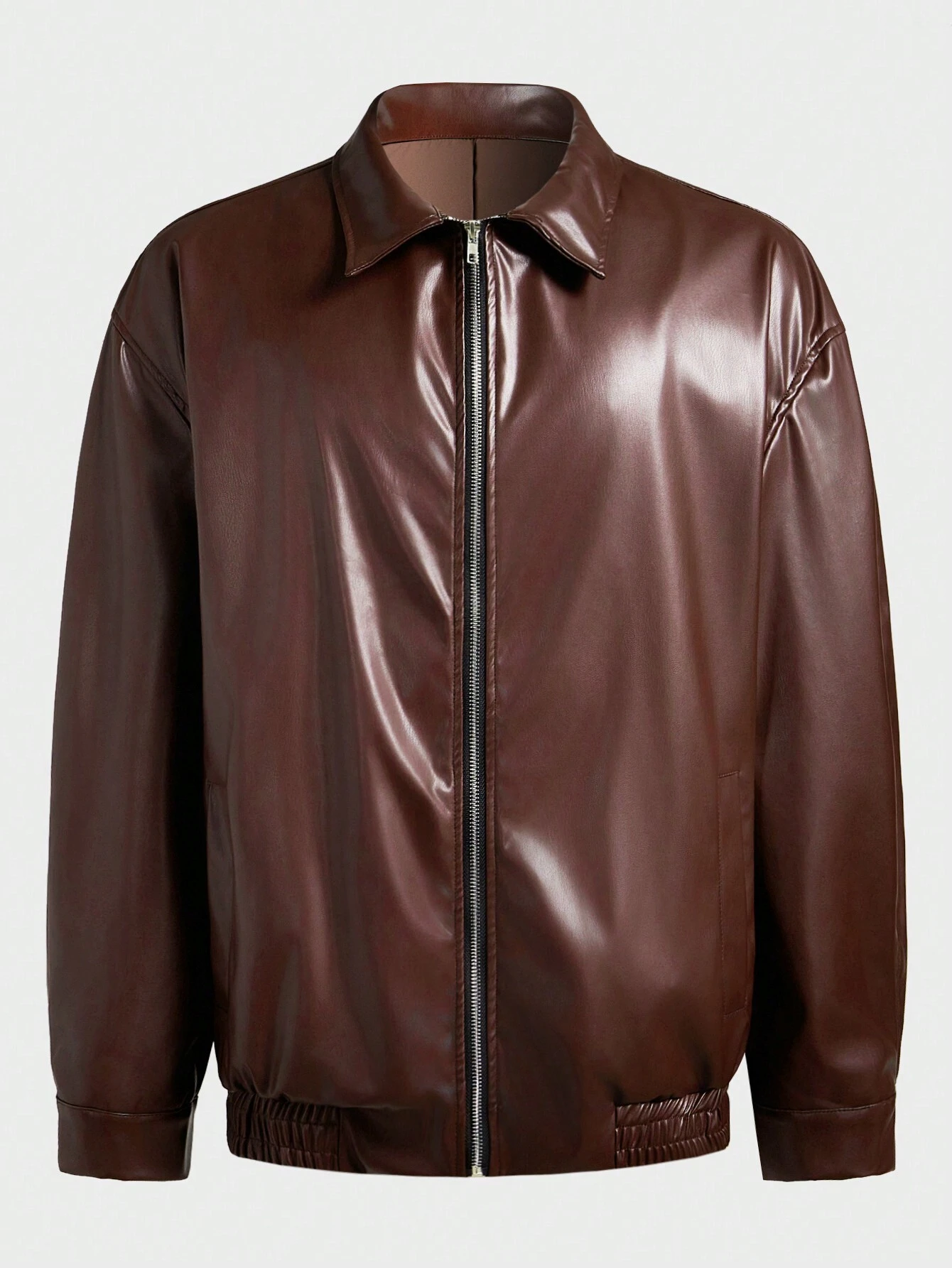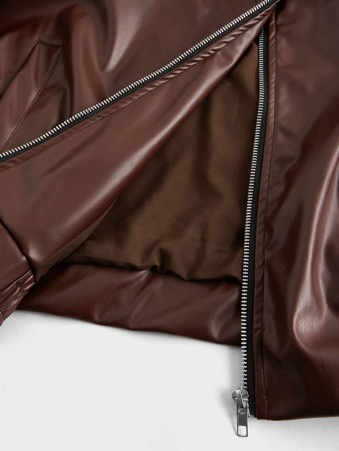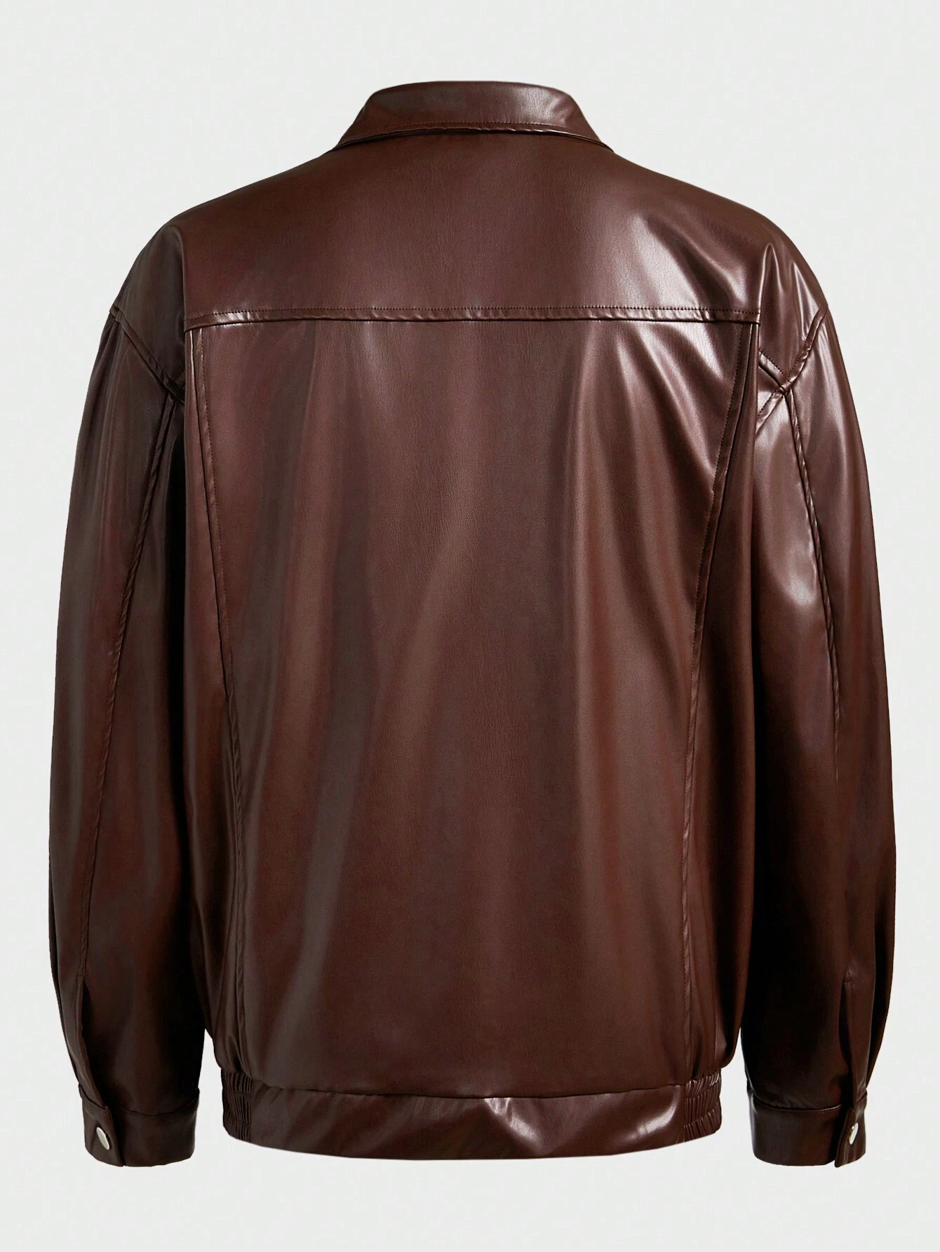 Manfinity Homme Men’s Solid Color Collar PU Leather Zipper Casual Long Sleeve Jacket